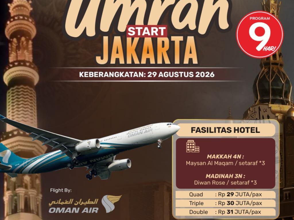 Umroh 9D Start Jakarta 29 Agustus 2026